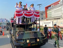 TangSel — Parade kendaraan tempur tank kembali mewarnai peringatan Hari Ulang Tahun (HUT) ke-80 Kemerdekaan Republik Indonesia di Kota Tangerang Selatan, Minggu (17/8/2025).